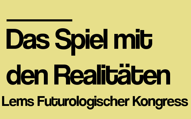 Zu den Ewiggestrigen darf sich zählen, wer anno 2012 noch Science-Fiction liest statt sie digital am Bildschirm zu konsumieren. Und wirklich; das Schwadronieren über modernste Technologien zwischen zwei altbackenen Buchdeckeln erscheint als ein Anachronismus in sich selbst, ein Paradox im Fluss des gegenwärtigen Zeitalters, in der wir von Smartphones überhäuft werden wie Affen von – wovon werden Affen eigentlich so überhäuft? Egal. Fakt ist, dass wir meinen, mit Matrix sei schon alles über Videospiele gesagt, mit Gattaca und Minority Report die wichtigsten Zukunftsvisionen ausgeschöpft. Wir, alle, was ist das alles. Sollte diese Vorrede unversehens wieder in die alte Buhu-früher-war-alles-besser-Schiene fallen? Und das auf FreiesFeld? Schande. Deshalb kurz, klar und versöhnlich: Hier soll für einmal kein Videospiel der Star sein, sondern ein Buch: Der futurologische Kongress von Stanislaw Lem. Es ist, wie ich meine, eines der Bücher für unser virtuelles Ich.