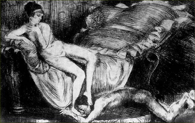 Den Schwenk zu Walter Benjamin zu machen, fällt nun leicht. In Benjamins Theorie wie in Bruno Schulz‘ Geschichte bzw. Götzenbuch wird die Zurückdrängung einer religiösen Kunst deutlich, vielleicht sogar der Religion selbst. In „The Book“ ist es ein Buch bewegter Bilder, das zur Hostie geworden ist. Und die kläglich zu ihrer Herrin emporschauenden Männer in Schulz‘ grafischem Werk deuten symbolisch an, was Benjamin mit jener „zweiten“ Technik meinte, die an sich auf das Verschwinden des Menschen abzielt. Seien das nun Drohnen oder automatische Abläufe – der Mensch scheint angesichts der ihn umgebenden, kafkaesken Maschinerie bedeutungslos geworden zu sein. Sakraler Text, der ihm einen Sinn zuweisen könnte, ist einer Bilderflut gewichen, die ihn herumstösst und verwirrt. Madonnenbilder haben dämonischen Frauen Platz gemacht. Ihre Macht verlangt passive Rezeption. Zugleich liegt aber der wohl interessanteste Anknüpfungspunkt bei Benjamin und Schulz gerade im „Spiel“. So wie man das Gefälle Frau-Mann bei Schulz als eine Art erotisches Spiel bezeichnen könnte – wie denn auch die Beziehung zwischen Wanda und Severin in Venus im Pelz auf einem „Vertrag“ beruht, der die Spielregeln festsetzt – spricht Benjamin von der Ausweitung des Spiel-Raums in der neuen Kunst. Im Film, sagt er, „ist das Scheinmoment ganz und gar zugunsten des Spielmoments zurückgetreten.“ Bei Schulz‘ Werk hat ein solcher allmählicher Übergang gar nicht erst stattgefunden. Schon die ältere Bild-Kunst, der Benjamin immerhin „Ausstellungswert“ bescheinigen würde – ja die „Bibel“ selbst –, ist mit den abgebildeten Frauen zum Gegner des Magischen, Sakralen geworden – oder eben zum Abgott, dem man sich zu Füssen legt. Kritisch stellt Schulz seine Figuren (darunter auch Künstler) als Götzendiener dar, die sich ganz ihrer spielerischen Obsession hingeben, wie auch Benjamin in der Kunst selbst das Spiel und den „Schein“, die Aura zugleich sah.