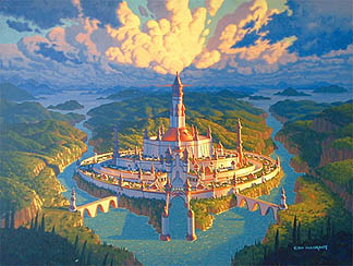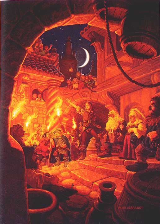 Aus dem Jahr 1979 stammt Urshurak, ein Fantasy-Epos im Stil von Lord of the Rings. Das Titelbild zeigt einen strahlenden Jüngling, eine bewaffnete Amazone, zwei Zwerge und weitere Kämpfer vor einer orientalisch anmutenden Stadt. Also etwas, das einem beim Gang durch die Bücherbrocky ins Auge fällt, und hey, die zwei Franken sind ja noch zu verschmerzen. Die von Jerry Nichols verfasste Geschichte verdient – wie zu erwarten – hinsichtlich ihrer flachen Charaktere, holzschnittmässigen Handlung und vorhersehbaren Wendungen keinen Nobelpreis. Interessanter sind da schon die rund 16 Farbtafeln und über 80 Illustrationen der Gebrüder Hildebrandt. Der Zeichenstil erscheint seltsam vertraut. Ein paar Rechercheminuten bringen Licht ins Dunkel: das wohlbekannte Star Wars-Poster von Episode IV stammt aus ihrer Feder. Urshurak entstand als Ersatzidee der Brüder, die zuvor an mehreren Herr der Ringe-Kalendern gearbeitet hatten und Tolkiens Werk am liebsten ins Kino gebracht hätten. Da die Rechte nicht in ihrem Besitz waren, musste eben eine andere Idee her, und so schufen sie das Land Urshurak, das in mehr als nur einer Hinsicht eine Hommage an Mittelerde darstellt. Gollum heisst hier „Oolu“, Mordor („Golgorath“) liegt im Norden und statt Sauron bekämpfen die Helden den dunklen Herrscher Torgon. Gandalf ist als Elgan vertreten, inklusive weiss schimmerndem Bart. So wenig Hehl Urshurak von seinen Wurzeln macht, so dient auch die Geschichte weniger dazu, etwas Eigenständiges darzustellen, vielmehr als Vehikel für die entworfenen Zeichnungen. Diese können sich in ihrer andersweltlichen Pracht wirklich sehen lassen und gehören mit zum Besten, was die Fantasy-Illustration so hervorgebracht hat. Einen schalen Nachgeschmack hat die dünne Geschichte trotzdem – vermutet man beim Anblick der Bilder Grosses, so wird dieser Eindruck spätestens beim Lesen der ersten paar Kapitel zerstört. Urshurak ist die Vorstellung zweier Zeichner und der beste Beweis dafür, dass hinter all der eskapistischen Schönheit solcher Bildkunst eben doch nur flache Denkkonzepte stecken, wie sie SF und Fantasy so zuhauf hervorgebracht hat. Aber man will ja mal nicht den Miesepeter spielen: