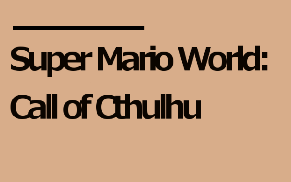 Von JÁNOS MOSER. Call of Cthulhu ist die wohl berühmteste Erzählung Lovecrafts, seines Zeichens Horrorautor und Erfinder des kosmischen Grauens. Und seit 2013 auch der Name eines Super Mario World-Romhacks.…
